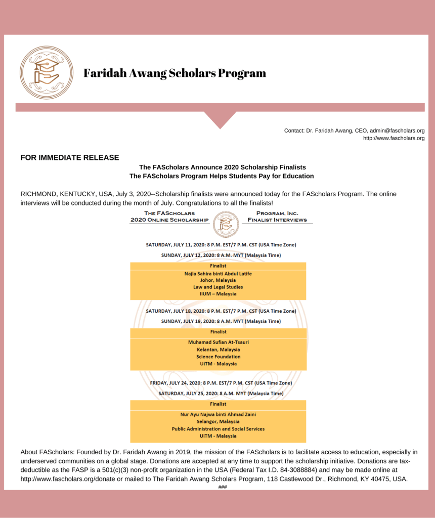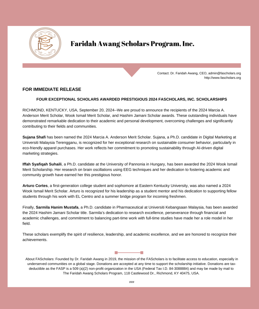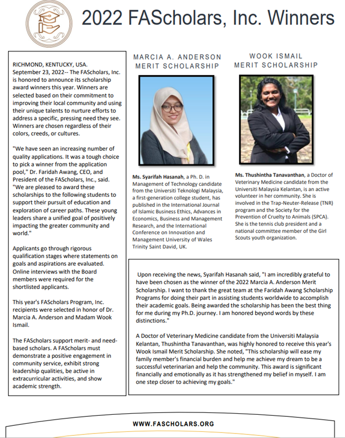 Dr. Faridah Awang is “In the News” for academic and professional accomplishments.